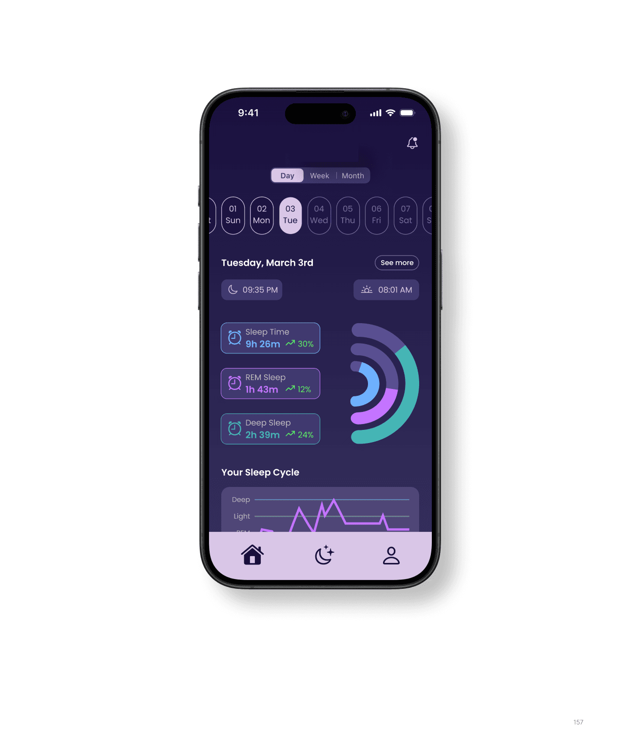 Tracks sleep data, providing insights about sleep stages, nightly cycles, and overall sleep history.